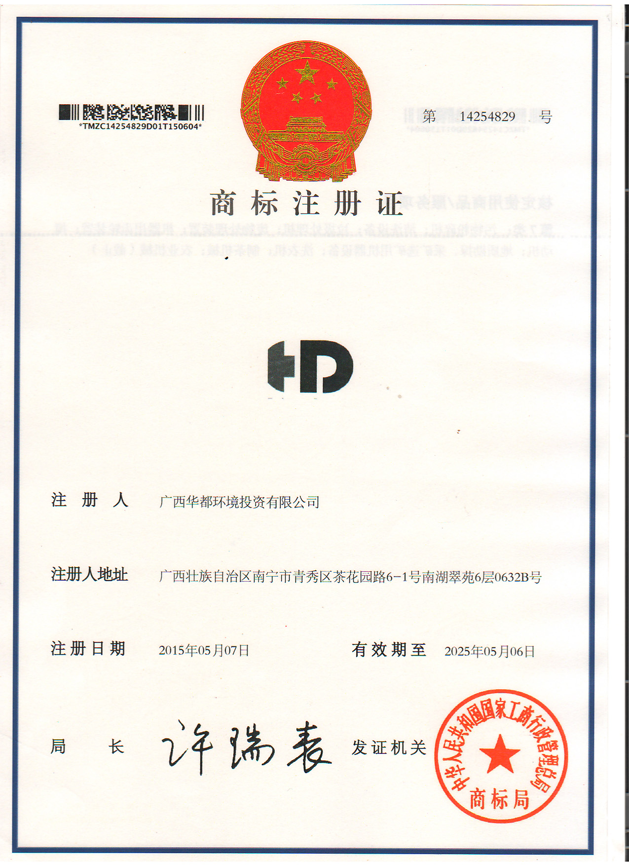 華都商標注冊證二